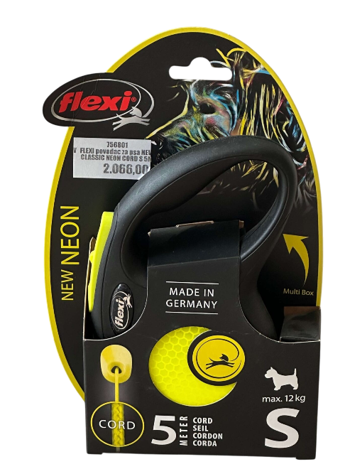 Flexi New Neon Cord S 5m je lagan i praktičan automatski povodac sa kanapom dužine 5 metara, namenjen malim psima do 12 kg.