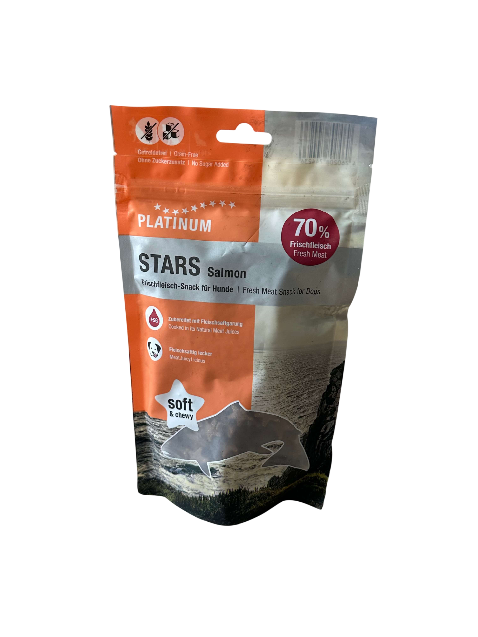 Platinum dog poslastica za pse stars losos 185g su mekane, žvake u obliku zvezdica, savršene kao nagrada ili užina za pse. Sadrže 70% svežeg lososa, što ih čini bogatim izvorom proteina.