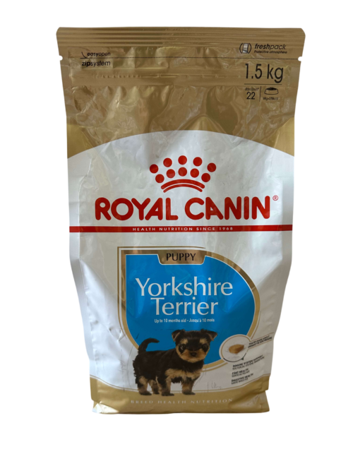 Royal Canin Yorkshire Terrier Puppy 1.5kg je potpuna suva hrana namenjena štencima rase jorkširski terijer do 10 meseci starosti. Formula je prilagođena specifičnim potrebama ove rase u periodu rasta i osmišljena je da pruži podršku prirodnoj odbrani organizma, zdravlju dlake i pravilnom varenju.