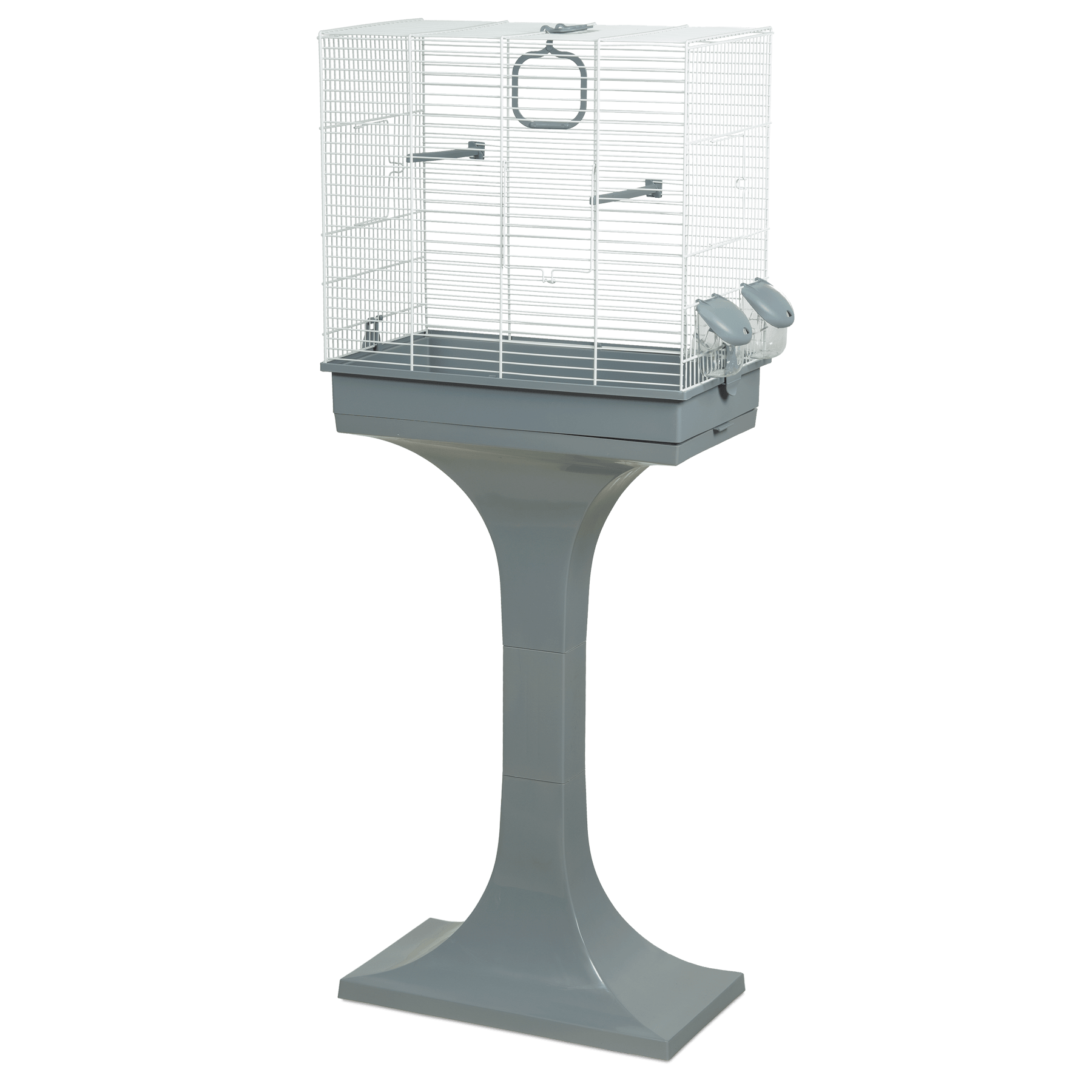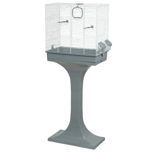 Kavez pruža dovoljno prostora za svakodnevne aktivnosti ptica, dok postolje omogućava stabilno postavljanje u prostoru.